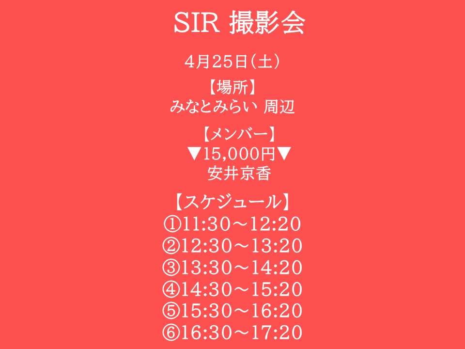 4/25(土)「SIR安井京香 撮影会」