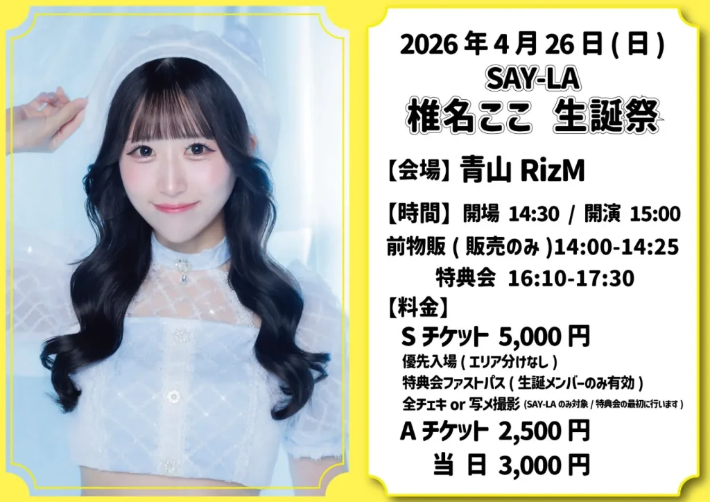 2026年4月26日『SAY-LA 椎名ここ 生誕祭』